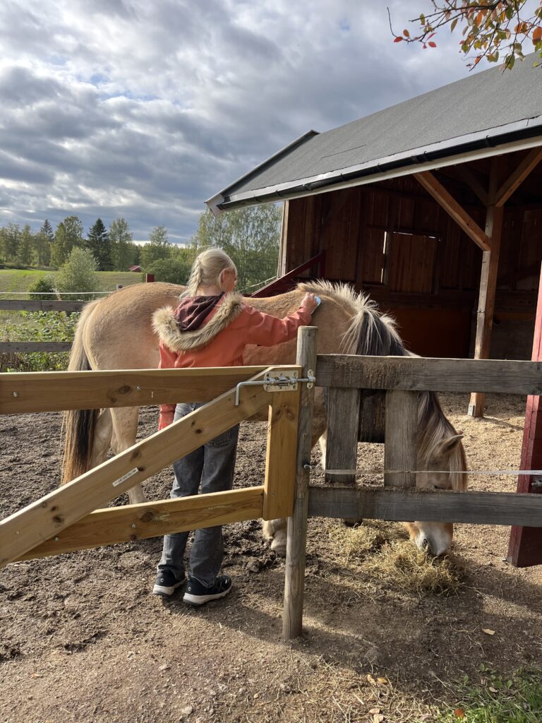 Grevskapet Inn på tunet tibyr etter skoletid tilbud på gården. Vi henter på skolen, tilbyr enkel brødmat, frukt og grønt og har aktiviteter med dyrene sammen på gården. Vi leker, klikkertrener, koser med kaniner og kyllinger, trener hestene og har kjepphestkonkurranse. Elevene får være med og bestemme aktiviteter og har gården for seg selv den tiden de er her. Vårt fokus er å skape glede og lek i fellesskap med andre, og gi hver og en rom til å være seg selv!